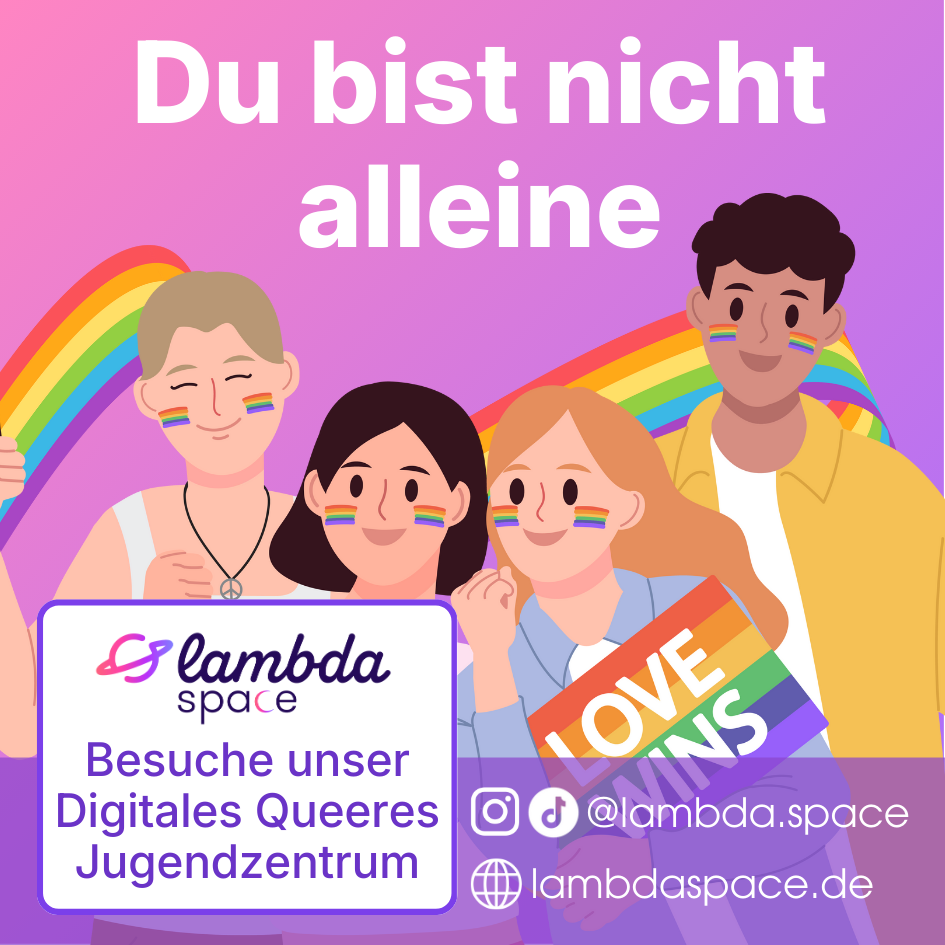 Im Rahmen des gemeinnützigen Projekts "lambda space" hat das Jugendnetzwerk Lambda e.V. ein digitales Jugendzentrum veröffentlicht. Das Ziel: Die familiäre Atmosphäre, den Austausch und die Gemeinschaft eines lokalen Jugendzentrums jederzeit und ortsunabhängig verfügbar zu machen. Das Portal ist durch mehrere Sicherheitsvorkehrungen geschützt und bietet die inklusive und barrierearme Vernetzung queerer Jugendlicher in ganz Deutschland. lambda space kann kostenlos abgerufen und genutzt werden.
